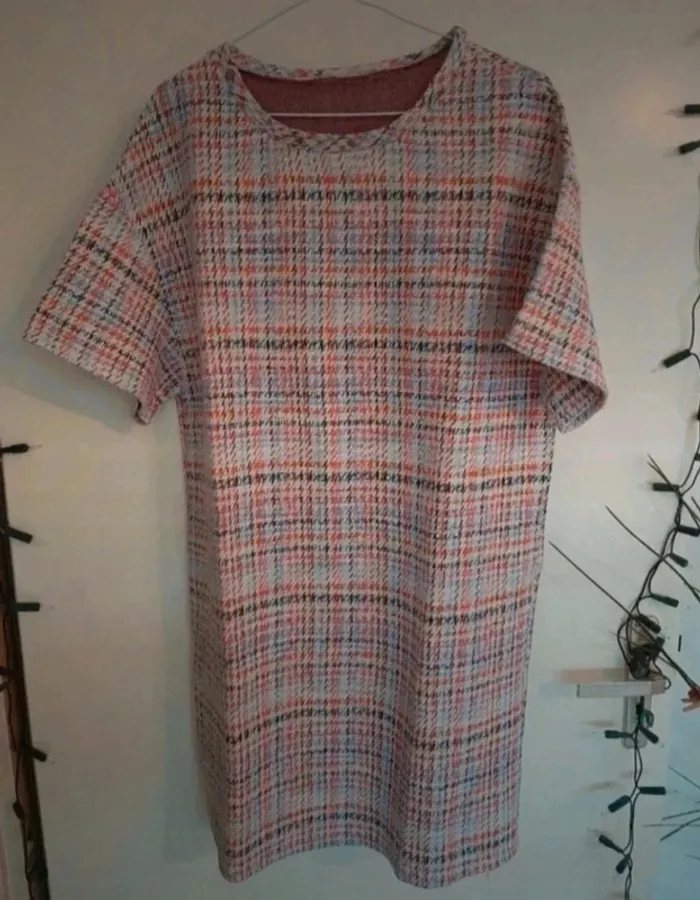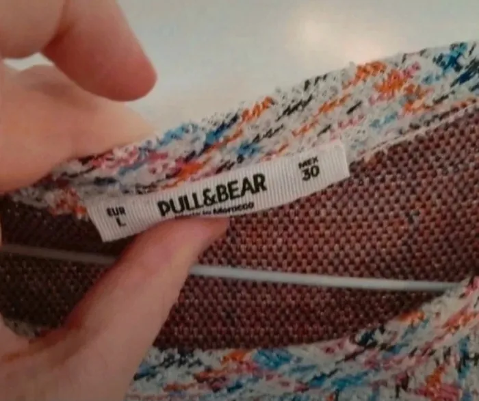 Belle robe pull manches courtes Pull&Bear taille L. Motifs pieds de poules multicolores. Très bon état. Confortable ! Je la vends au prix de 17 euros. #TailleL40marine