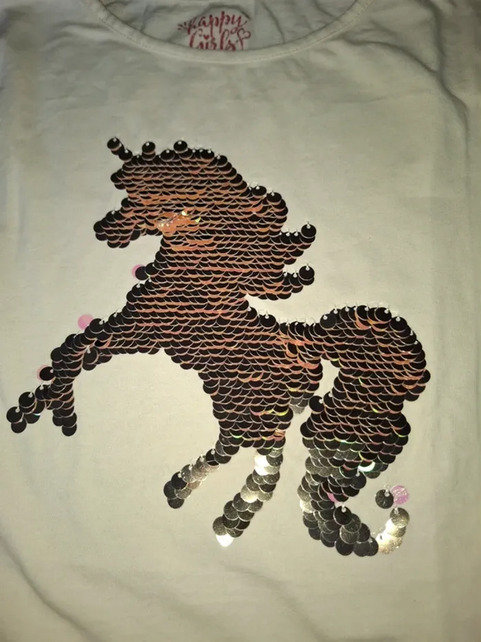 T-shirt beige cheval sequins 10 ans - photo numéro 1