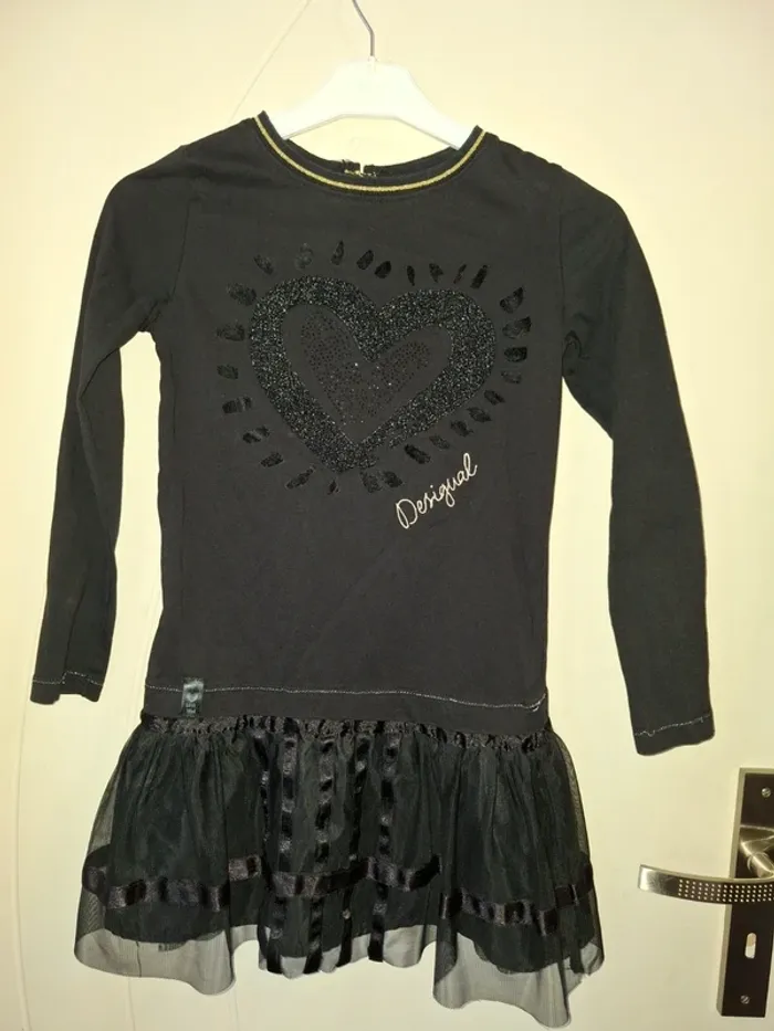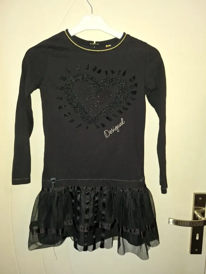 Robe Desigual noire comme neuve portée 1 ou 2 fois Motif coeur bas en tulle Taille 7/8 ans Marque Desigual #8anssevy57 #7anssevy57