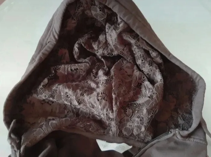 Ensemble de nuit ou d'intérieur. Hunkemoller, taille S/M. Couleur marron. Pantalon 3/4 avec poches à scratch. Pull à capuche avec dentelles dedans, détails dentelles aussi sur les bras. Très bon état. Je le vends au prix de 20 euros. #TailleS36marine #TailleM38marine