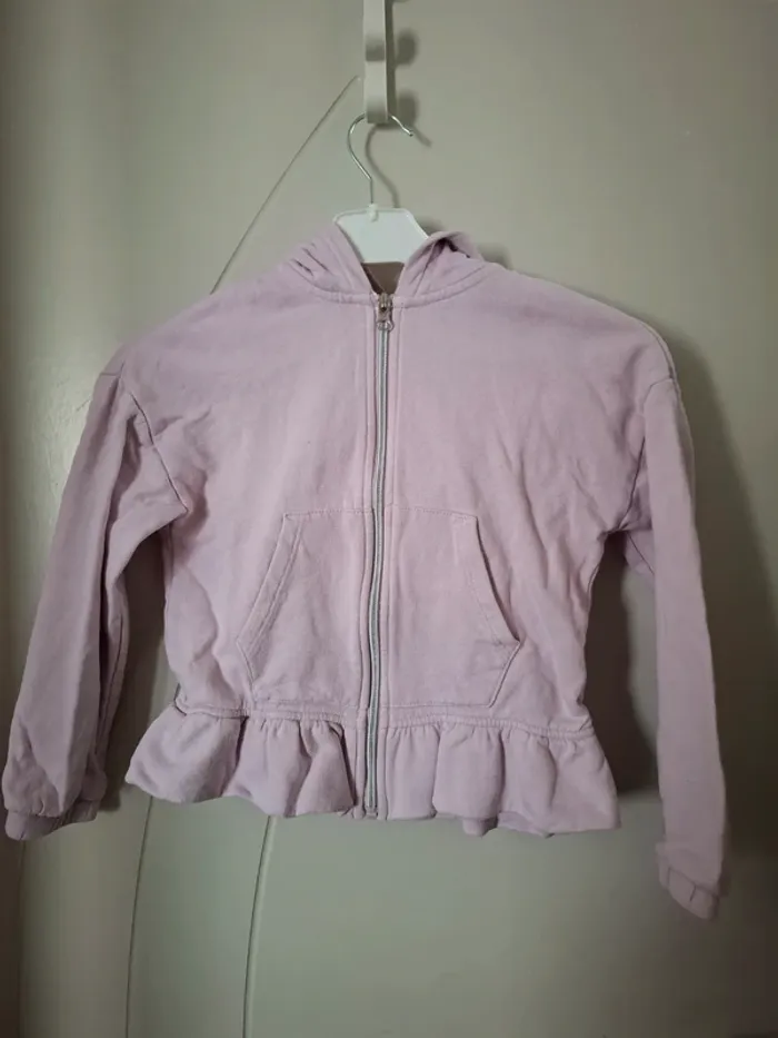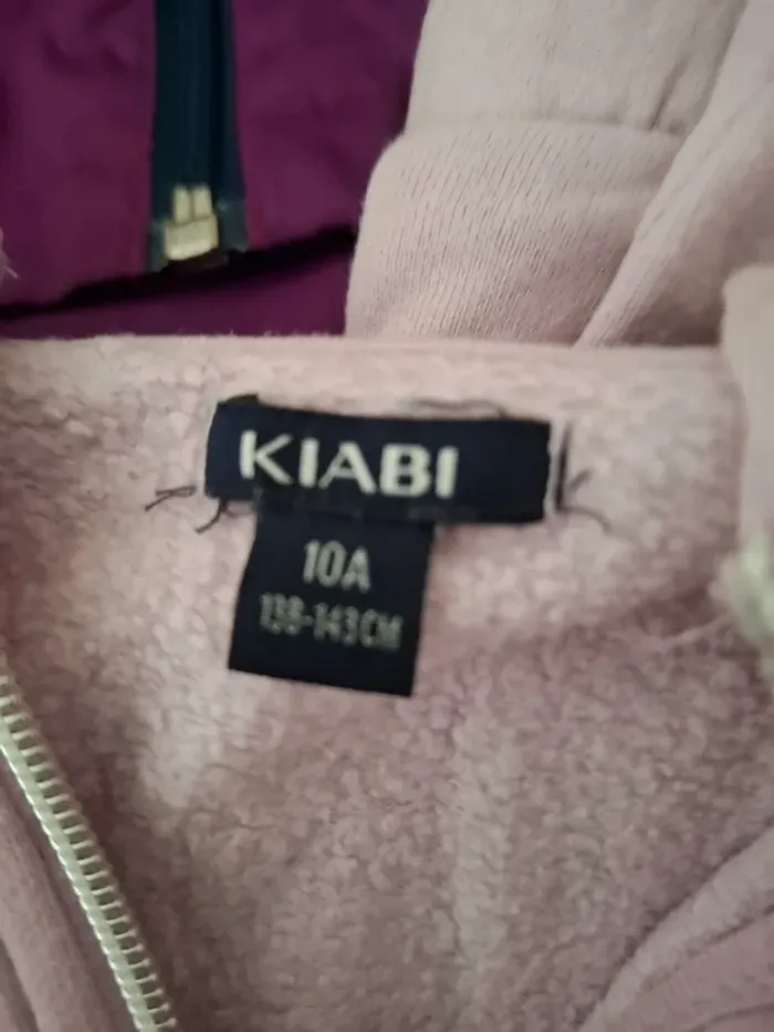 Gilet molletonnée matiere sweat mauve clair à capuche en parfait état comme neuf. Peu portée, taille 10 ans marque Kiabi #10anssevy57