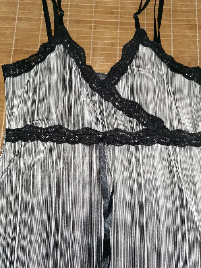 Joli top rayé noir et blanc Kiabi , bretelles réglables , taille 38/40 , longueur totale environ 73 cm , excellent état . N'hésitez pas à me demander d'autres photos ou infos complémentaires et à consulter mes autres ventes .