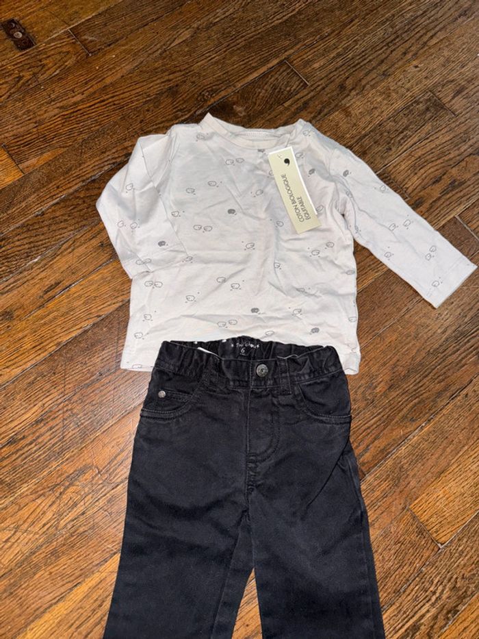T-shirt Bout’chou neuf avec étiquette et jeans (occasion, très bon état) 6 mois - photo numéro 2