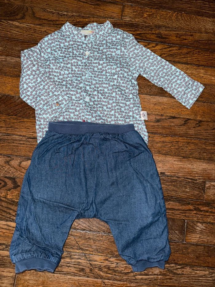 Chemise dpam et bas denim Bout’chou  12 mois - photo numéro 1