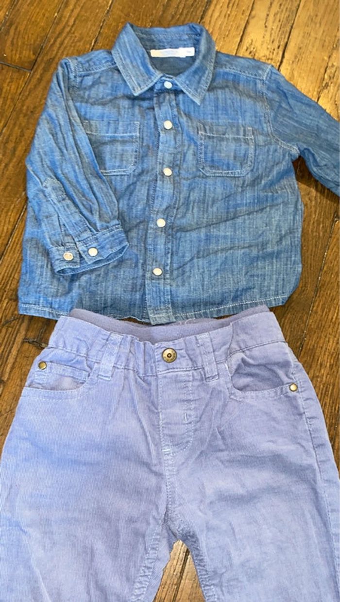 Ensemble chemise et pantalon velour Bout’chou  9 mois - photo numéro 1