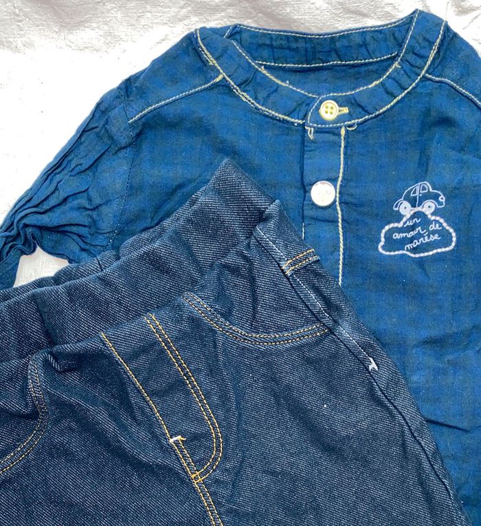 chemise carreaux Marèse 3 mois + legging H&M (2-4 mois) - photo numéro 2