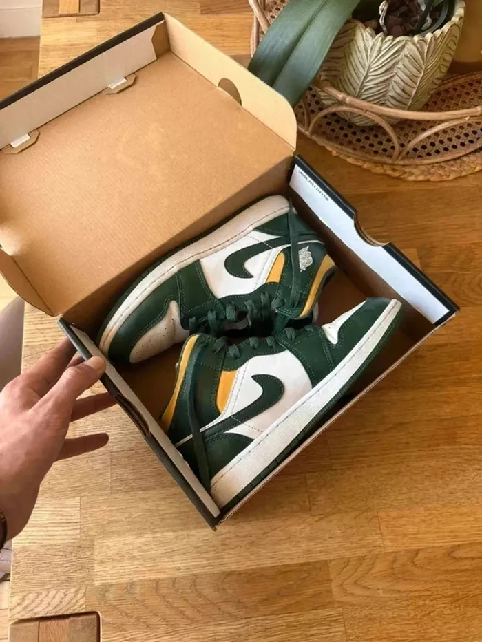 Air Jordan 1 Mid Sonics Vert et jaune Tres bon état , Taille 36,5 Achetée sur le site WeTheNew à 160€ 🚚 Livraison rapide OU possibilité de remise en main propre sur Paris N’hésitez pas à me poser des questions si besoin, je suis très réactif :)