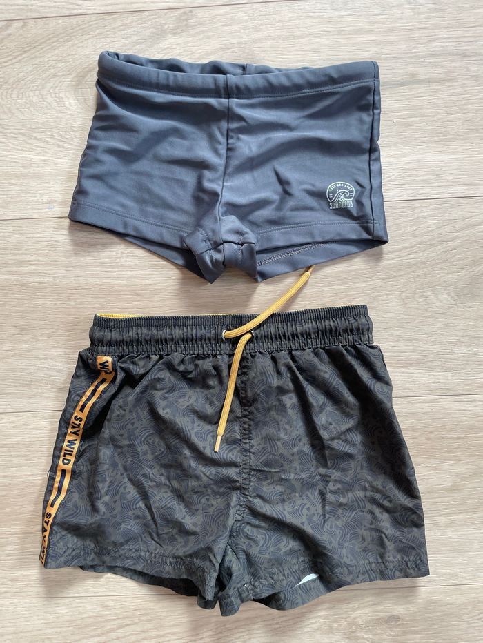 Lot taille 8 ans le gris est indiqué6 ans mais taille grand donc 8 ans petite tache sur le maillot de bain short voir photo
