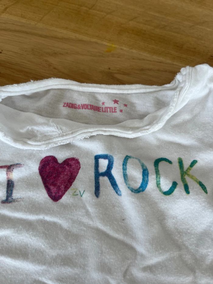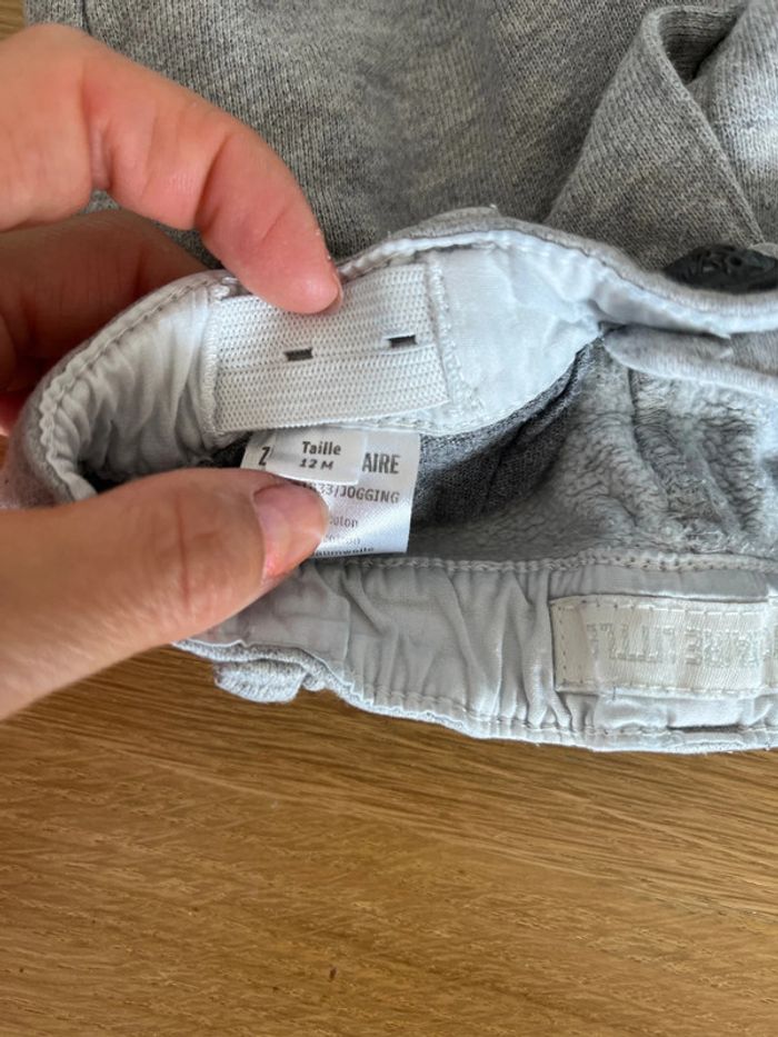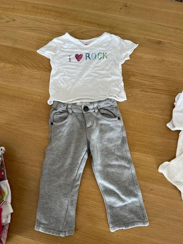 Lot composé pantalon gris clair en coton. Taille 12 mois T-shirt à manches courtes blanc écriture I. Love rock Zadig et Voltaire 12 mois en très bon état.