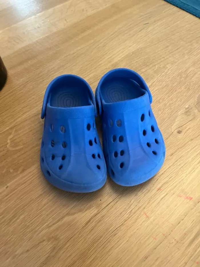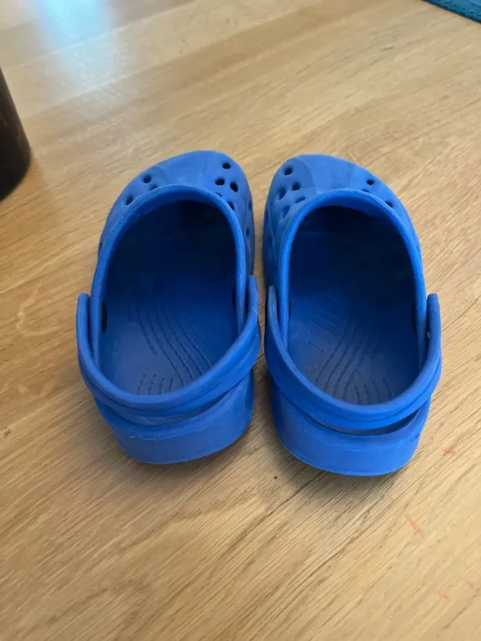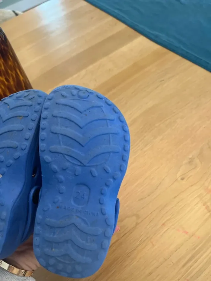 Sabots plastique style crocs , taille 24 coloris bleue porté, mais reste en bon état