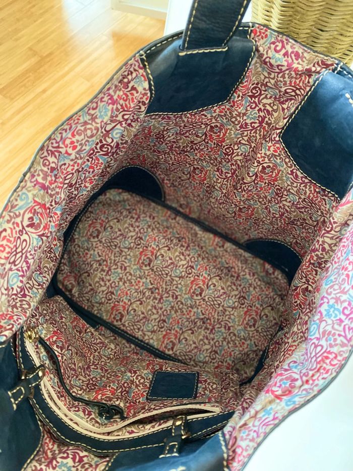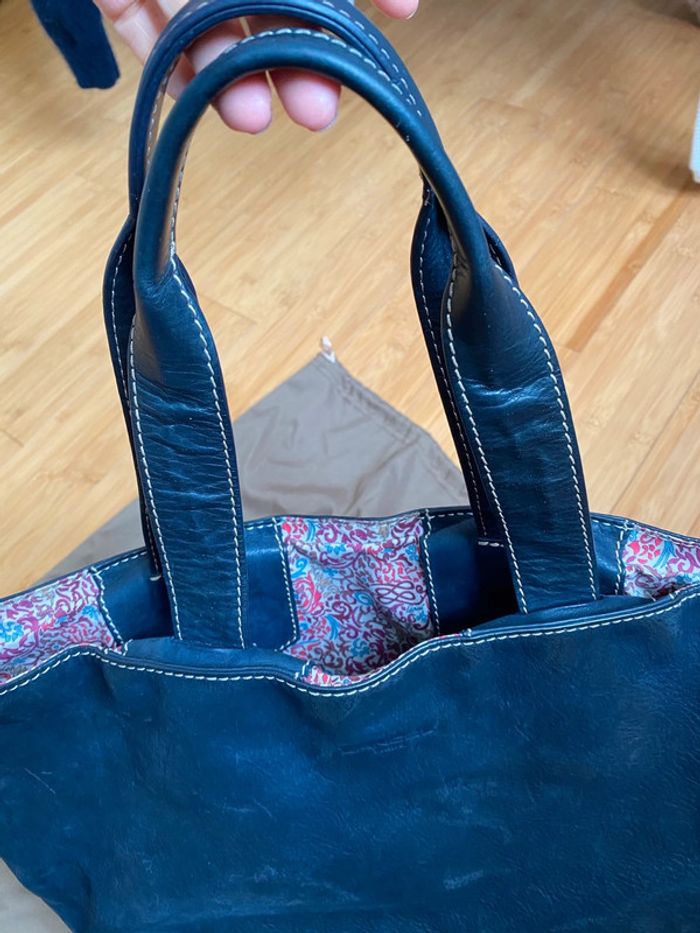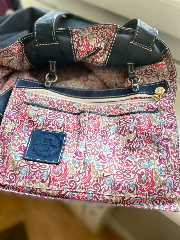 magnifique sac lancel ( authentique ) en cuir bleu intérieur fleurs liberty pochette intérieur amovible intérieur sans trous , sans taches cuir sur les anses non usée cuir extérieur patinée mais en très bon état vendu avec son dust bag conservée dans son dust bag uniquement largeur 45 cm hauteur 30 cm un intemporel de la marque remise sur les lots est activé à partir de 2 articles de mon dressing n’hésitez pas à aller voir mes autres ventes #legoutvetementfemmes