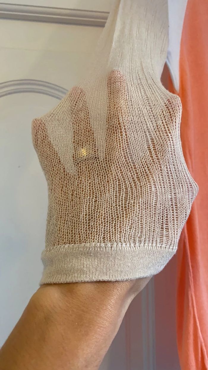 Petit pull à maille fine Mango taille S en parfait état manches ajourés beige bande blanché rose corail pour le reste la remise sur les lots est activé à partir de 2 articles Maison non fumeur Petit cadeau offert pour toute création de lot🎁🙂 #legoutvetementfemmes