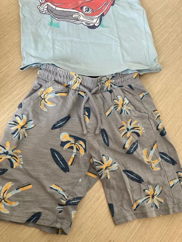 Ensemble short et t-shirt palmiers voiture 5 ans - photo numéro 1
