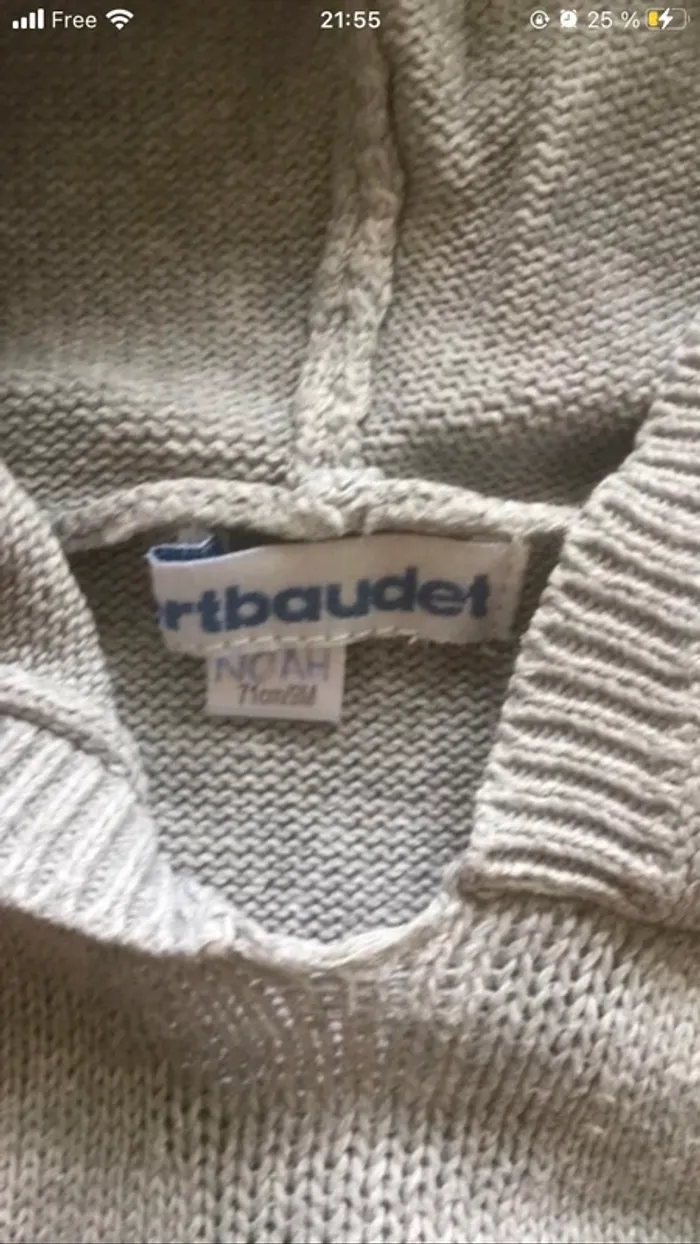 Pull à capuche sans manches verbaudet 6 mois