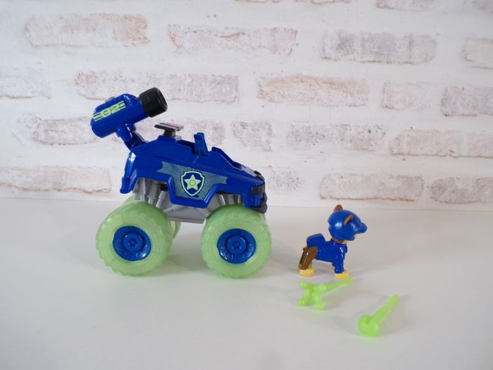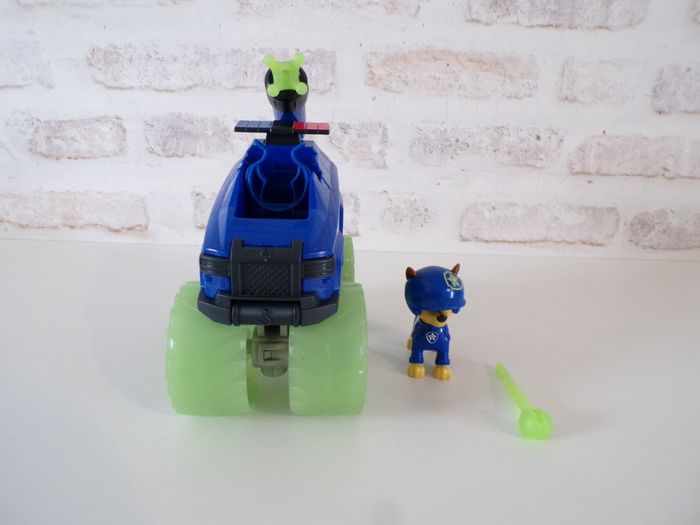 Véhicule Chase - Paw Patrol - Pat Patrouille, véhicule glow in the dark rescue wheels, les roues et les fléchettes brillent dans le noir. Le véhicule est complet avec ses deux fléchettes. Tout fonctionne parfaitement, en très bon état voir neuf. Mon dressing est trié par catégories, tailles et saisons pour les vêtements. Cliquez sur mes liens # qui sont dans l'annonce. #sonia222404 #jouetenfantsonia222404 #patpatrouillesonia222404