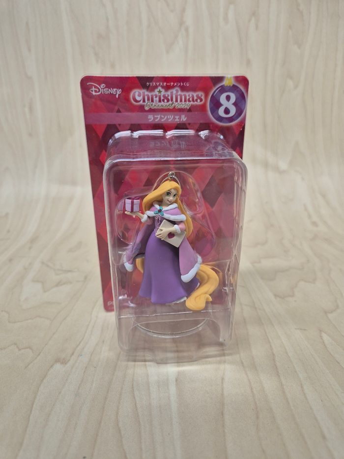 Figurine/ ornement de Noël Disney Happykuji 2024 : Raiponce (Tangled). Plastique, environ 6-7cm, en excellent état sous blister en état correct. Chaque figurine vient avec un lien pour accrocher dans le sapin et un socle pour exposition.