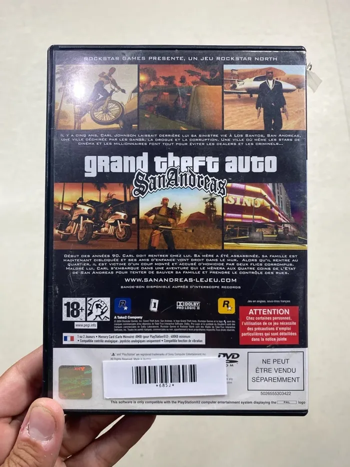 Plongez dans l’univers culte de GTA San Andreas sur PS2 ! Incarnez CJ et redécouvrez Los Santos, San Fierro et Las Venturas dans une aventure mythique remplie d’action, de missions variées et de liberté totale. 📀 État : Bon état, complet avec boîte et disque (voir photos). ✅ Testé et fonctionnel ⚠️ Quelques traces d’usage sur la boîte mais n’altèrent pas le jeu. 🔹 Version : PAL FR 🔹 Éditeur : Rockstar Games 🔹 PEGI 18+ 🚚 Envoi rapide – Expédition sous 48h jours ouvrés. #gtasanandreas #gtaps2 #grandtheftauto #rockstargames #gtacollection #jeuxps2 #ps2games #retrogaming #collectionps2 #gamerlife #playstation2 #gtafans #actionadventure #jeuvideooccasion #collectionneurjeuxvideo #classiqueps2 #gta #jeuxvideos #retrocollection #sanandreas #cjgta #gtafrance #gamingfr #jeuxps2collector #vintedgaming #occasionps2 #ps2collection #consoleps2 #videogames #ps2lover #gtafan #gamersfr #gtafr #retrogamefr #collectiongaming #playstationlover #gtaclassic #rockstar #gamerfr #jeuxvideosretro #ps2retro #gta2k #ps2addict #jeuxvideosoccasion #gtafanfr #gamingcollector #gta2 #retrofr #gtaaddict #vintedfr #ps2occasion