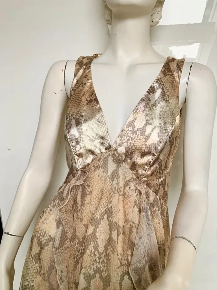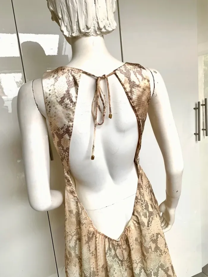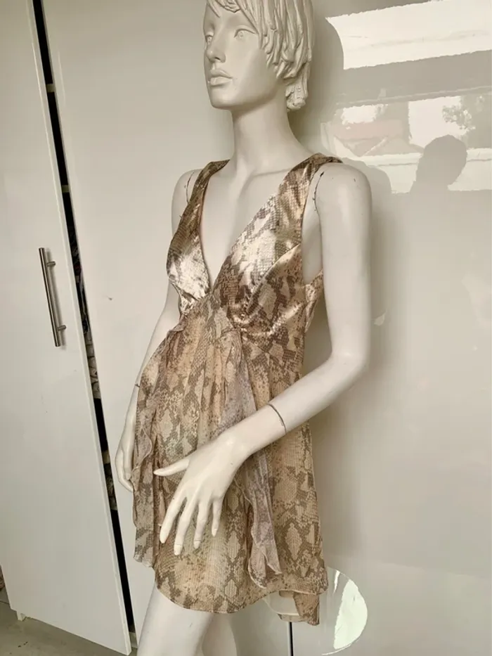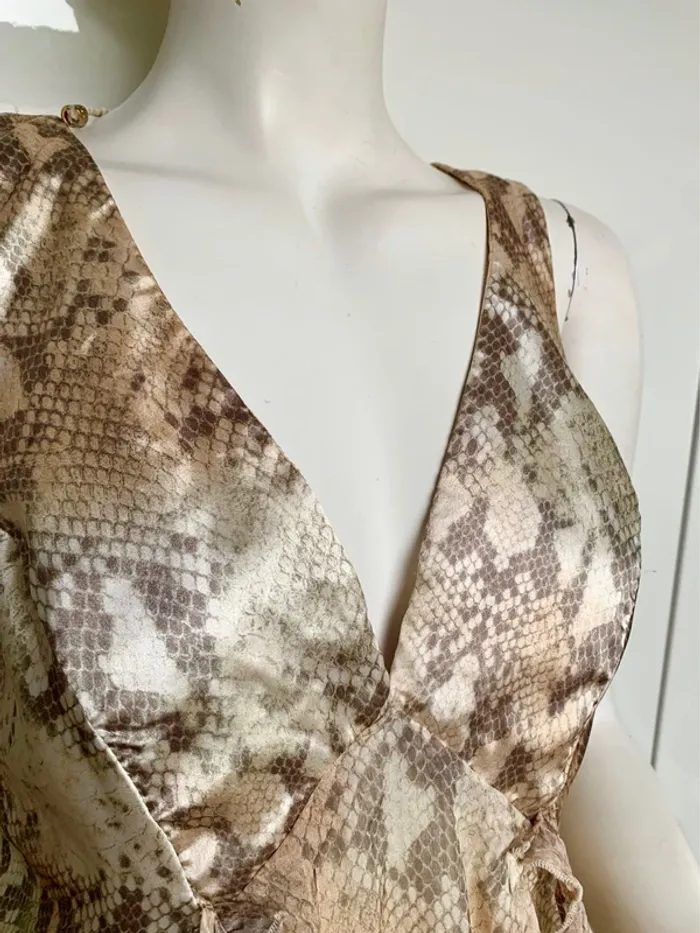Magnifique robe inspiré des années 2000,satiné,imprimé crocodile, dos nus et avec une doublure en dessous Taille s/petit M