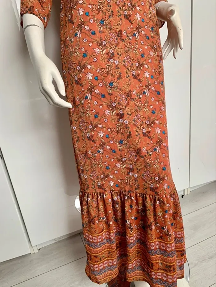 Robe longue orange,imprimé floral - photo numéro 3