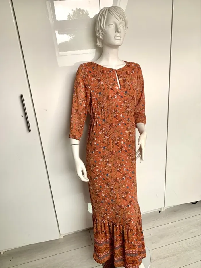 Robe longue orange,imprimé floral - photo numéro 1