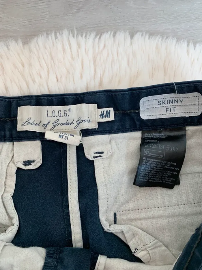 Pantalon élégant bleu,il manque un bouton sur la poche arrière voir dernière photo