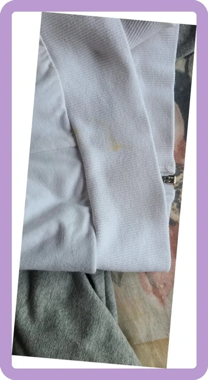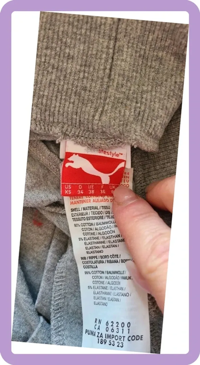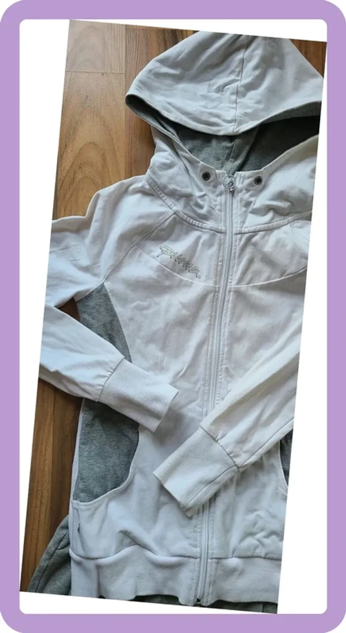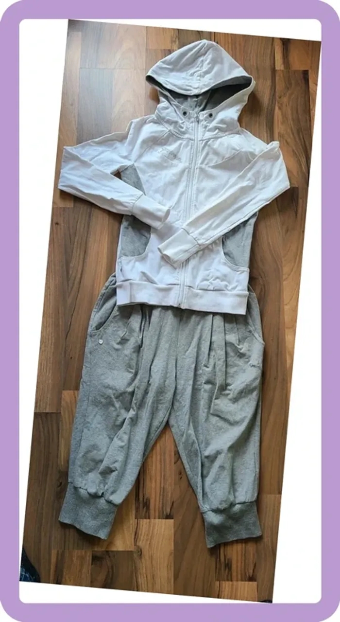 Pantalon 3/4 sarouel, jambes bouffantes Très original Puma Taille 36 Petites tâches tenaces sur la manche et le bas de la veste très discrète voir photo Légère différence de ton au niveau du blanc, mais également très discrète voir photo Acheté 85€ en 2022