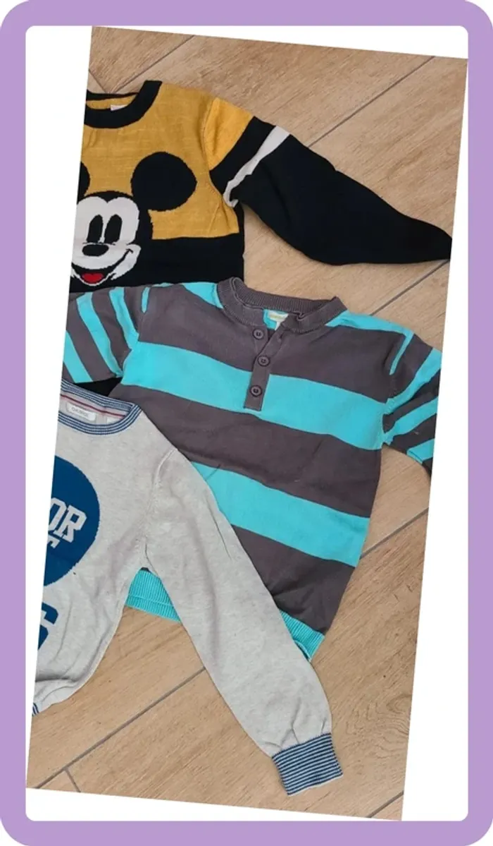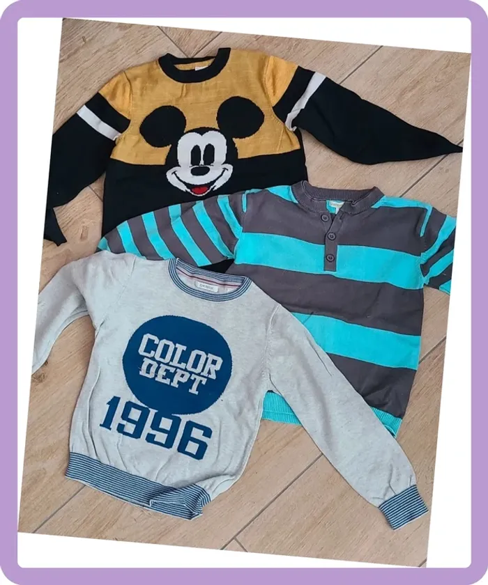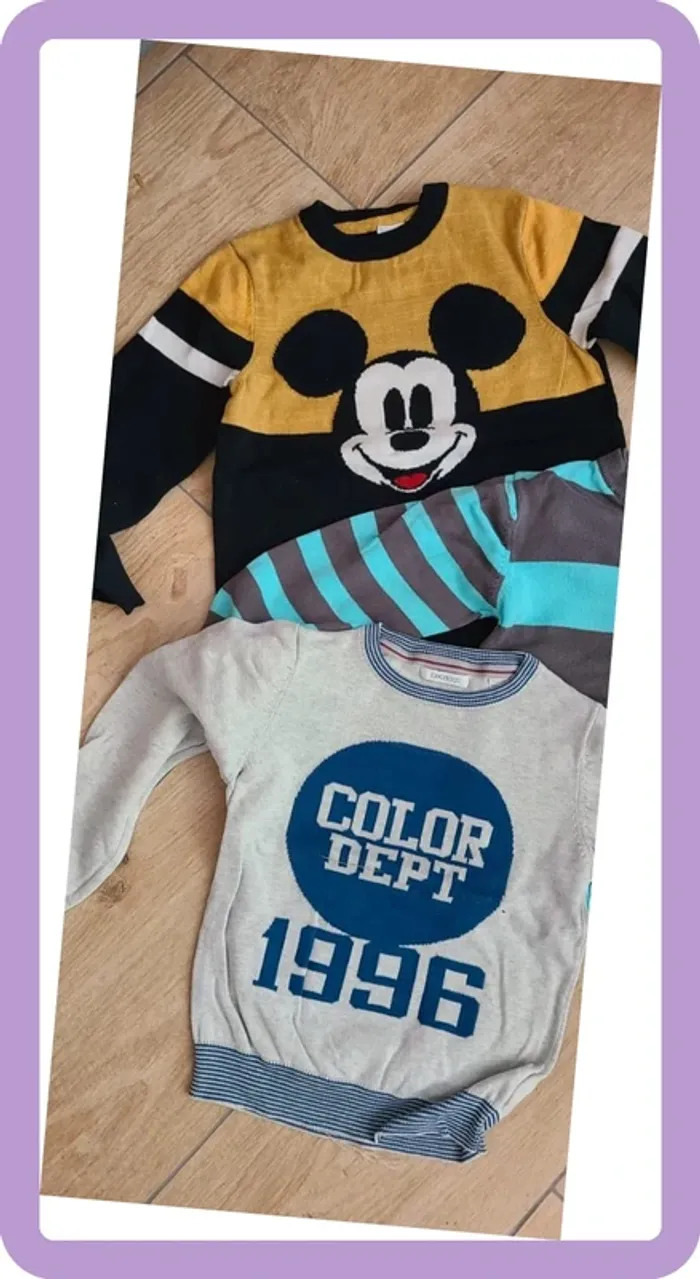 Un pull Mickey Disney (jaune légèrement décoloré mais rien de grave) Un pull verbaudet Un pull Okaidi
