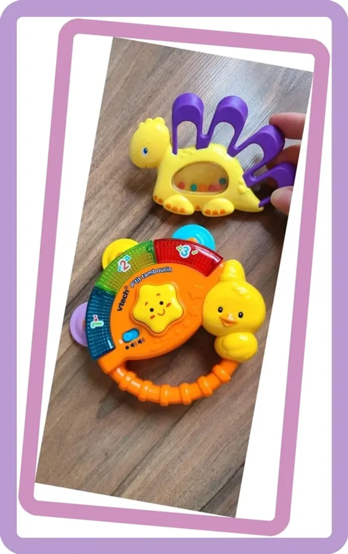 P'tit tambourin Vtech Un anneau de dentition avec billes multicolores dinosaure Bright stars