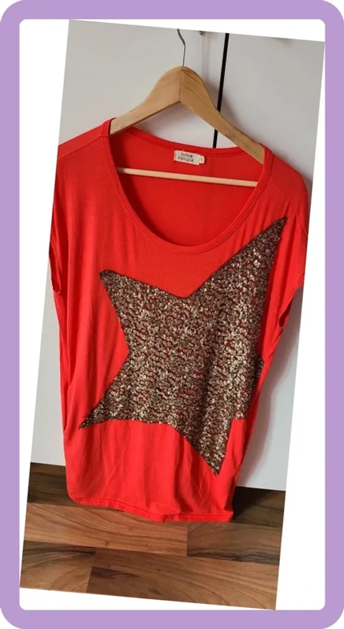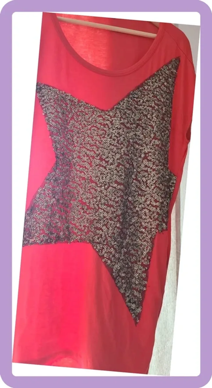 Taille unique T-shirt étoile paillettes Rouge Avec poches