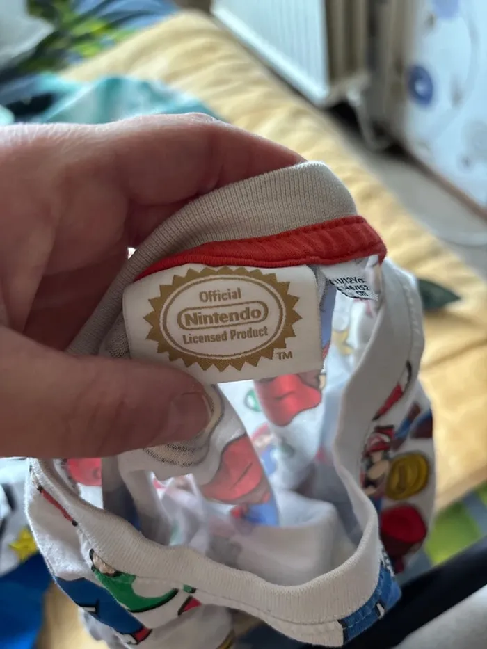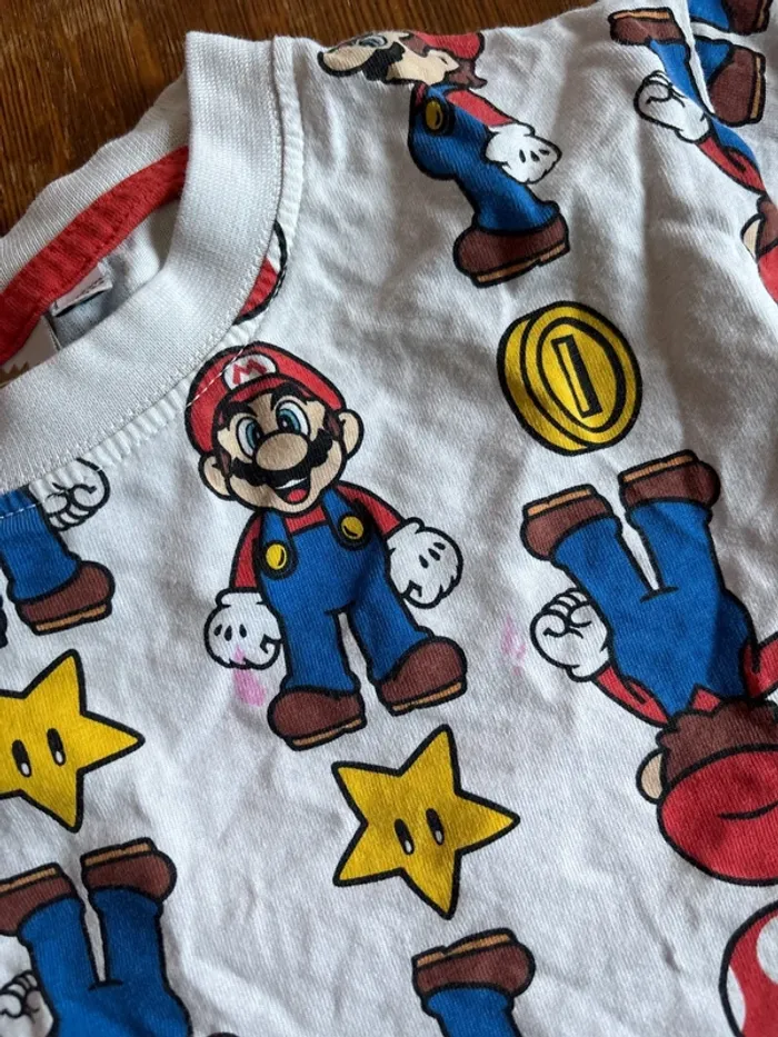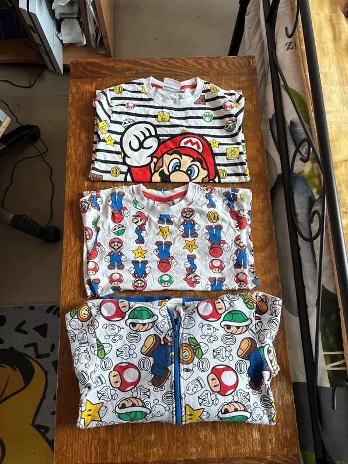 lots 3 pièces mario en bon état quelque défauts tache et bouloche voir photo taille 11/12 ans tout est du officiel