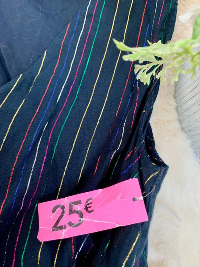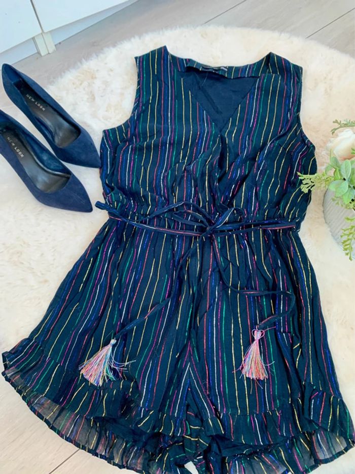 Combi short neuve avec étiquette pour l’été bleu marine,avec rayures colorées et un lien à la taille