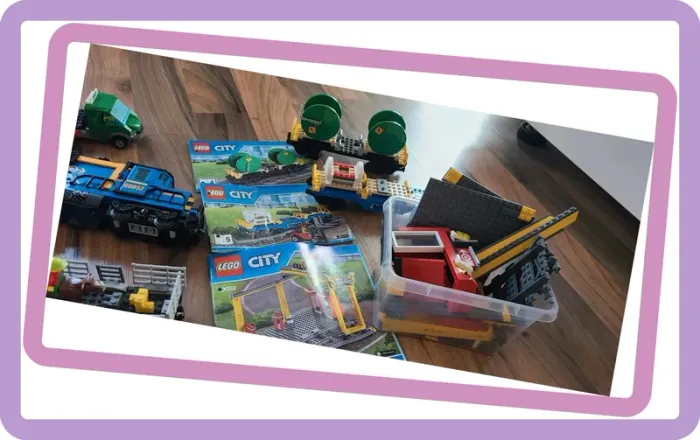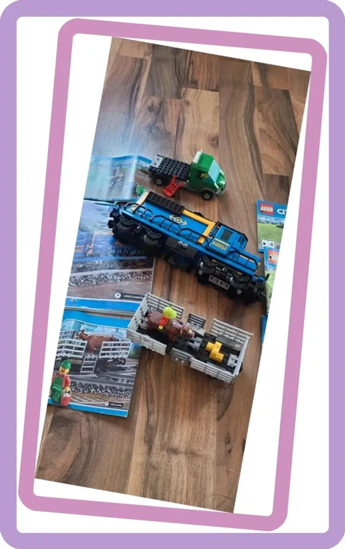 Lego 60052 Train de marchandises Il manque quelques pièces (une quinzaine) mais n'altère en rien son jeu et sa fonctionnalité Valeur Amazon 504,99€ et Cdiscount 460€ Vendu en l'état