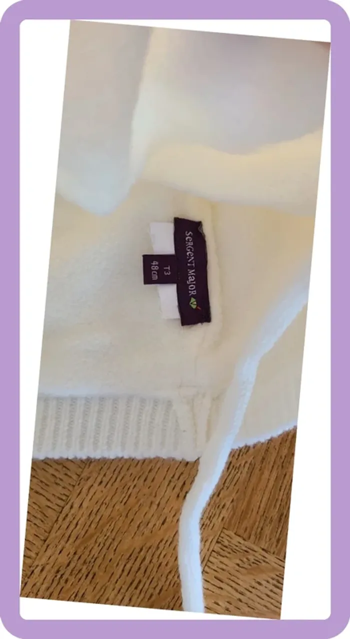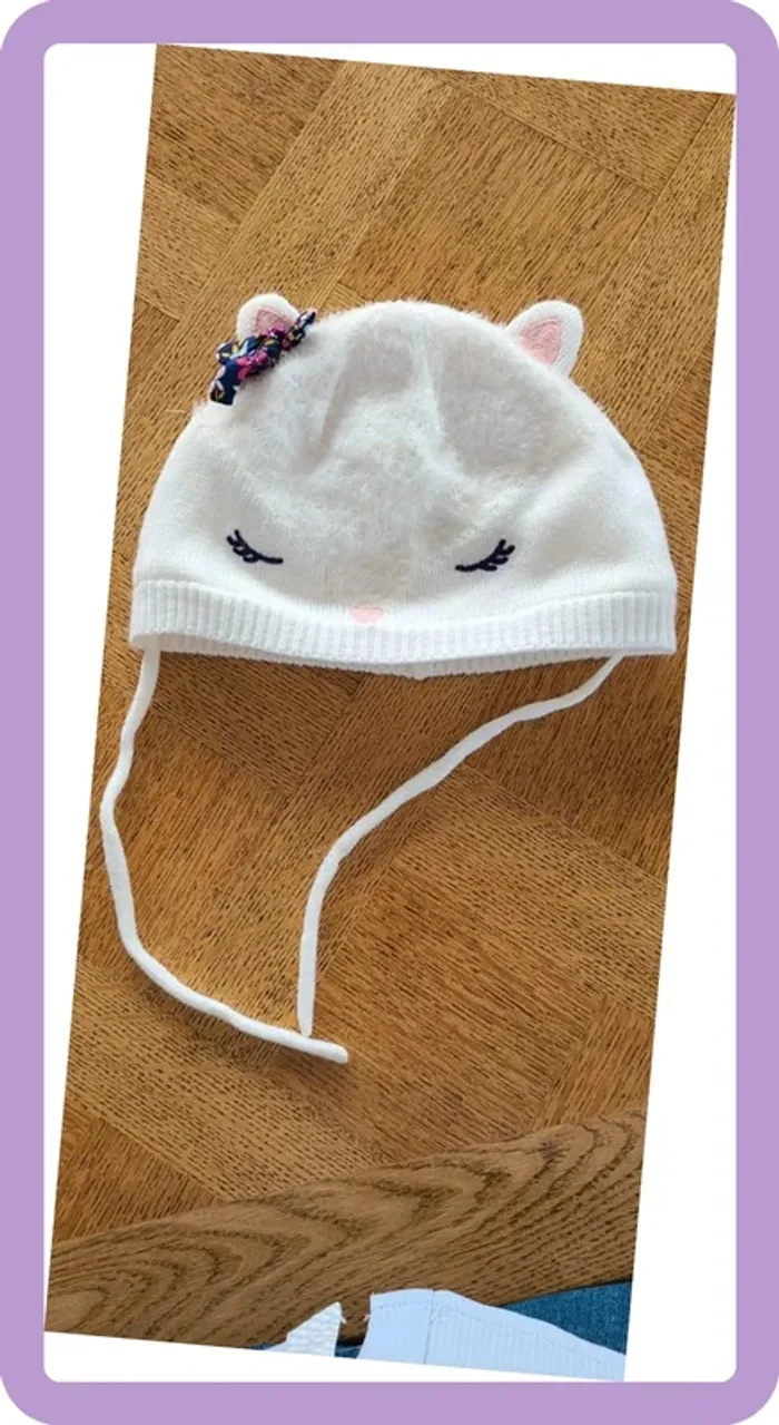 Magnifique bonnet Chat Blanc Il est neuf jamais porté, juste ôté les étiquettes mais était trop petit pour ma fille Correspond à du 6-12 mois (taille 3, 48cm)