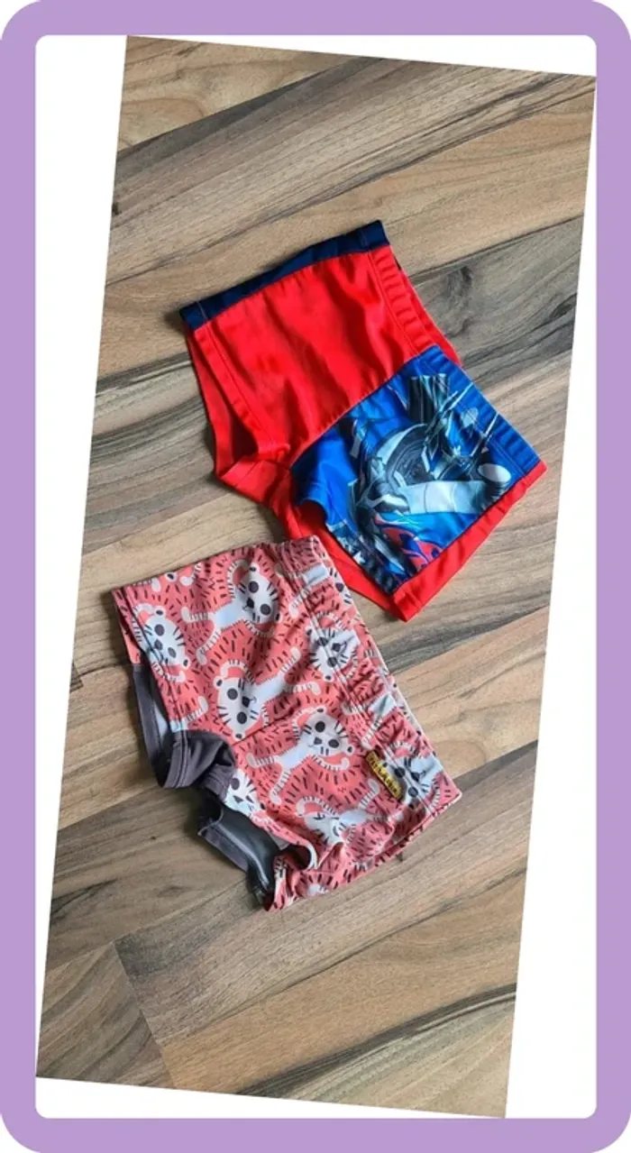 Slips de bain Petit Béguin et Avengers 110-116cm Petite bouloche sur l'un et écriture manquante sur l'autre
