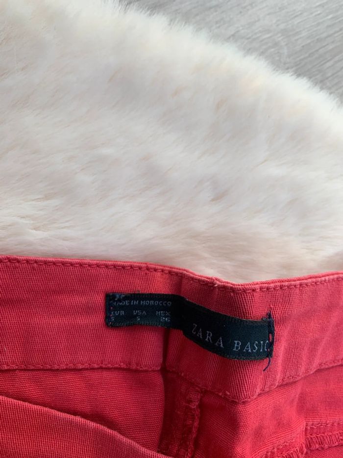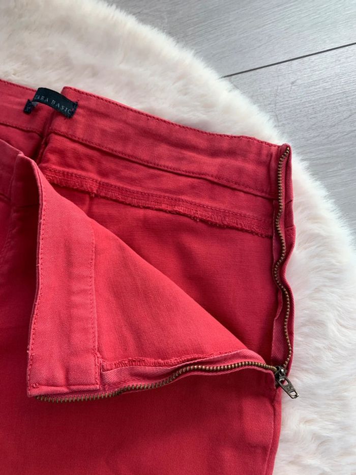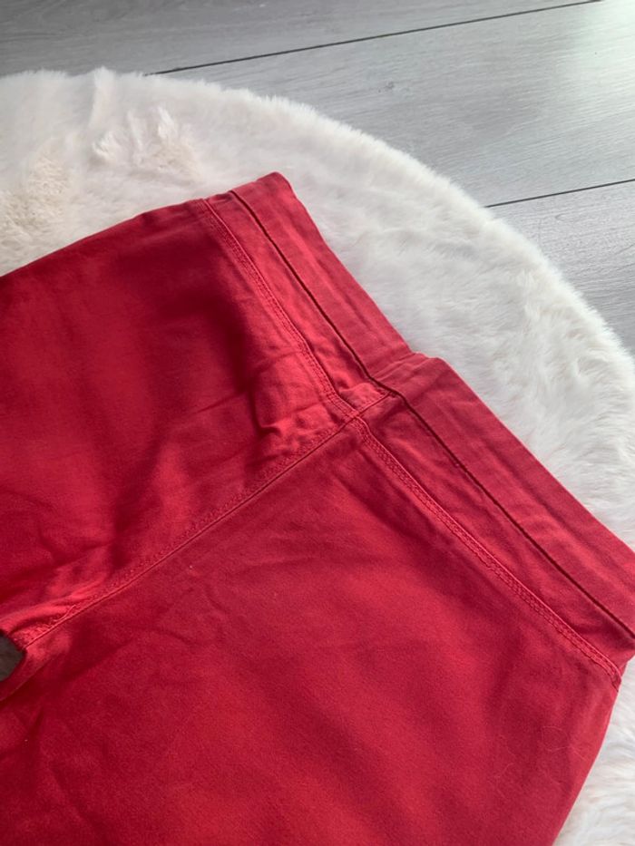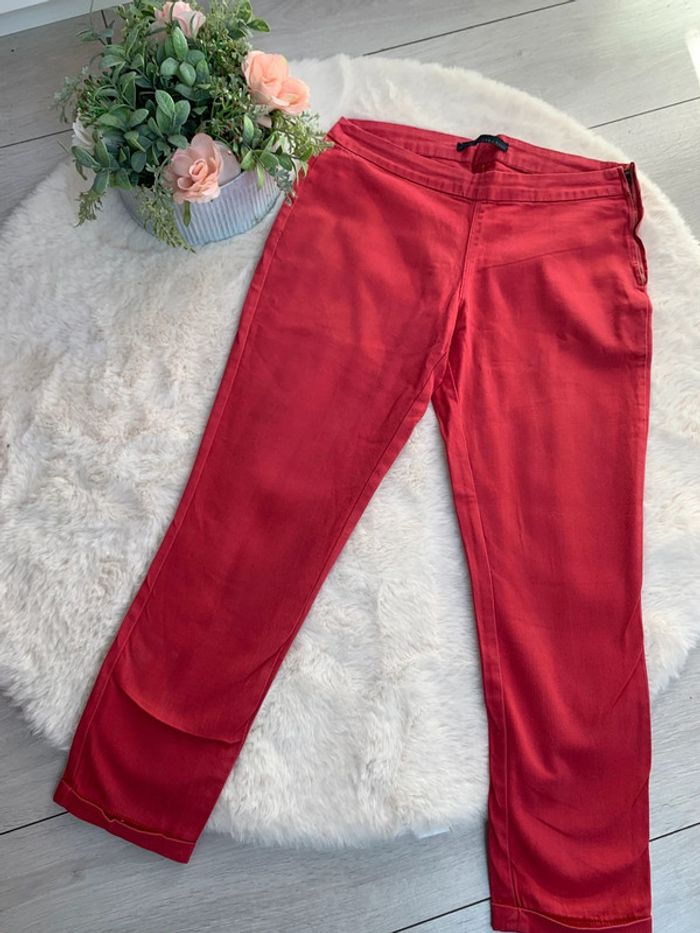 Pantalon d’été rouge avec fermeture éclair sur le côté . Pantalon court qui se porte au dessus des chevilles . Pas de poches