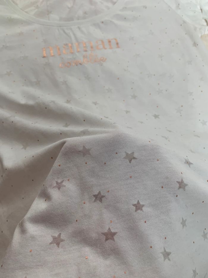 T shirt blanc avec écriture rose gold et étoiles transparentes. Maman taille S neuf jamais porté et fille taille 7/8 ans porté quelques fois #cadeau #fetesdesmeres #merefille