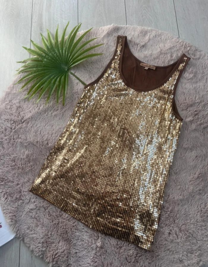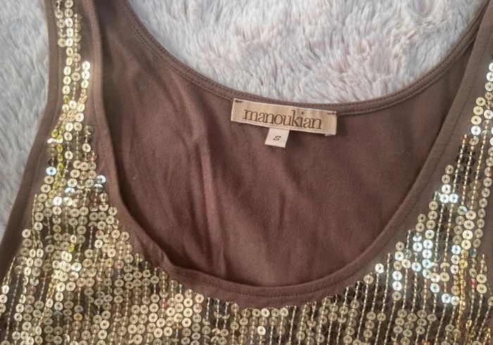 long 65 cm t 38 #manoukian #manoukianfemme #hautdesoiree #doré #sequin