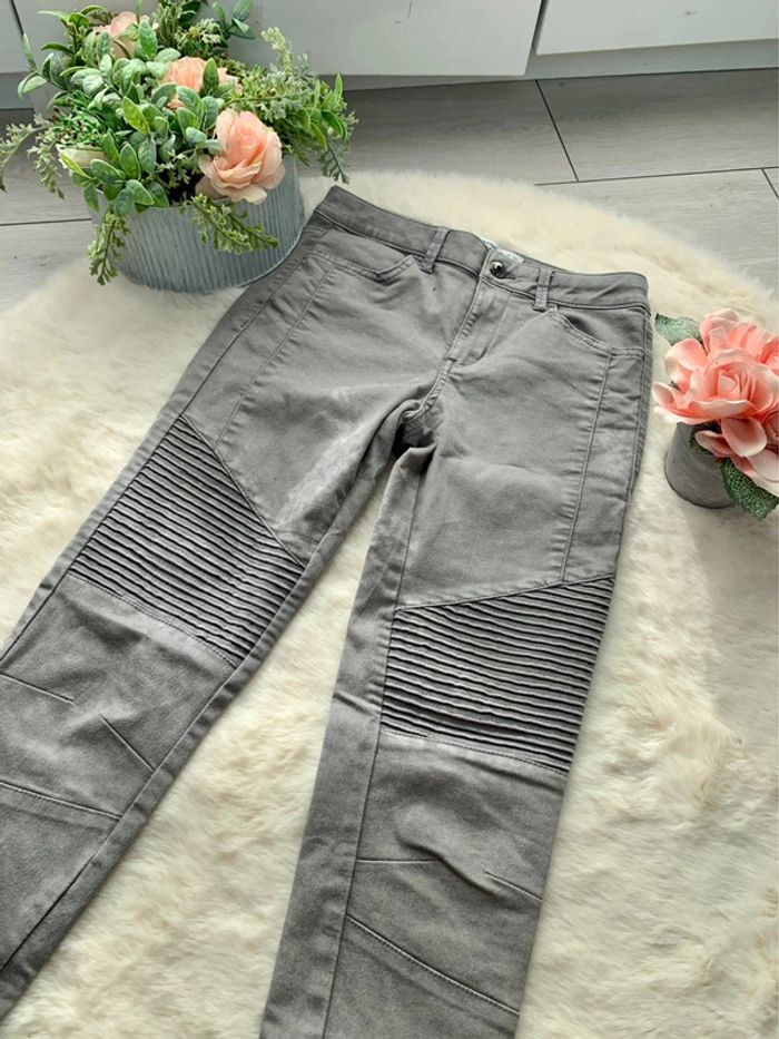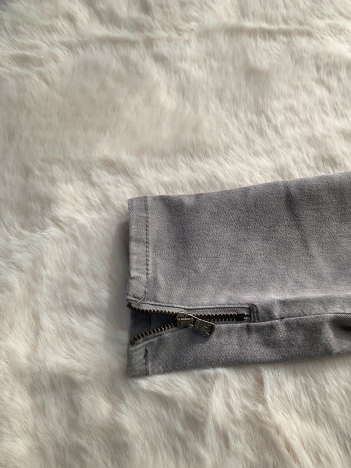 Jean skinny gris plié sur les genoux avec fermetures éclaires en bas des jambes #zarabasic#jeansgris#femme34#zara34