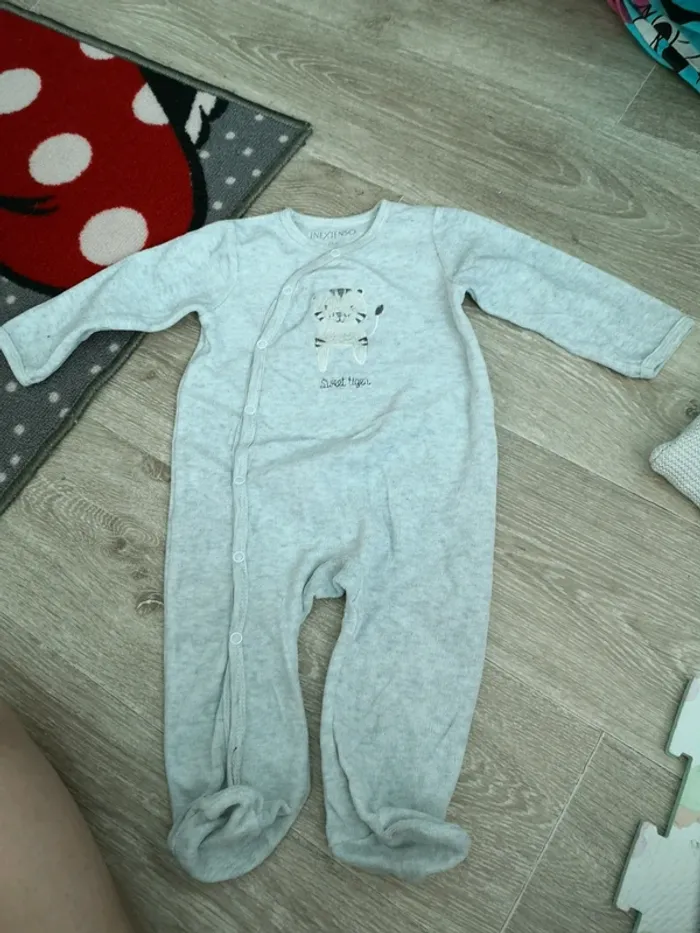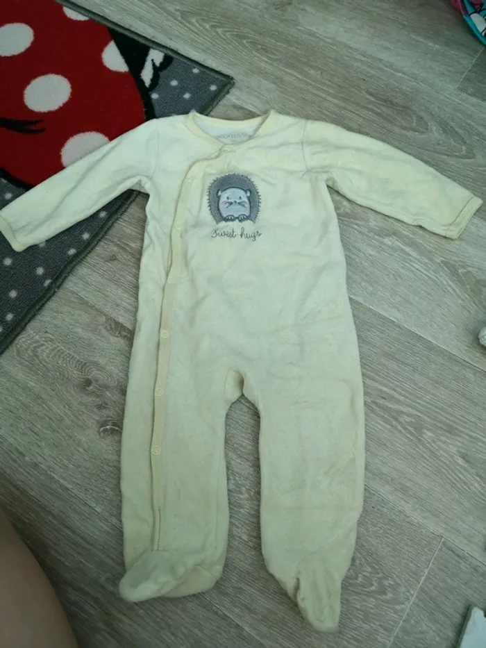 Lot de 2 pyjamas en bon etat bien portee le gris a le col tachee voir photo et le jaune est nikel taille 74 cm 9 mois