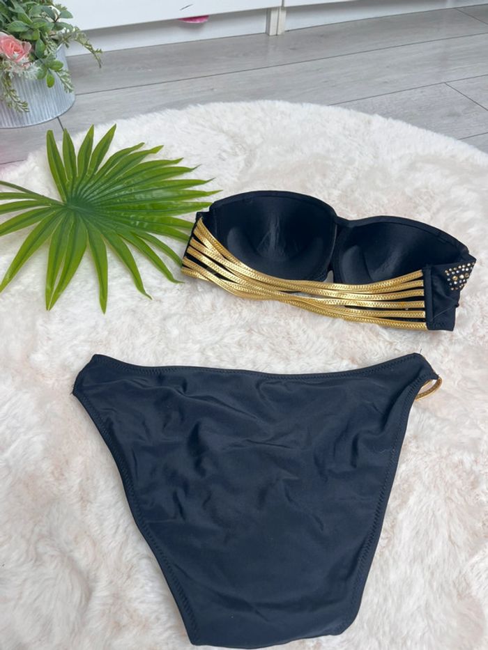 bikini bandeau noir et doré - photo numéro 5
