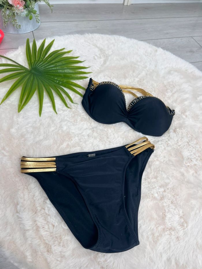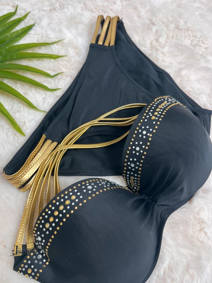 bikini bandeau noir et doré neuf armatures