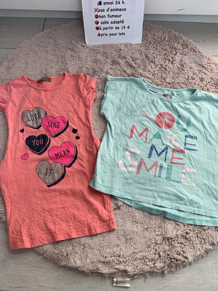 Deux t shirts 10 ans ( le t shirt rose corail à des poches )