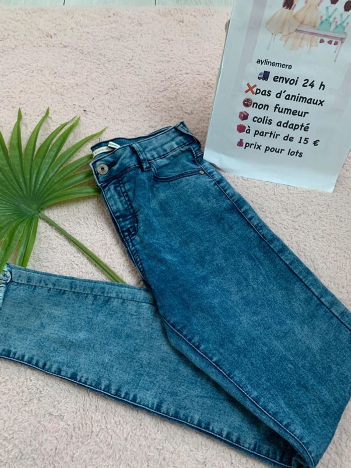 Jean en très bon état sauf tache blanche qui ne part pas (voir dernière photo ) marque Bershka taille 36