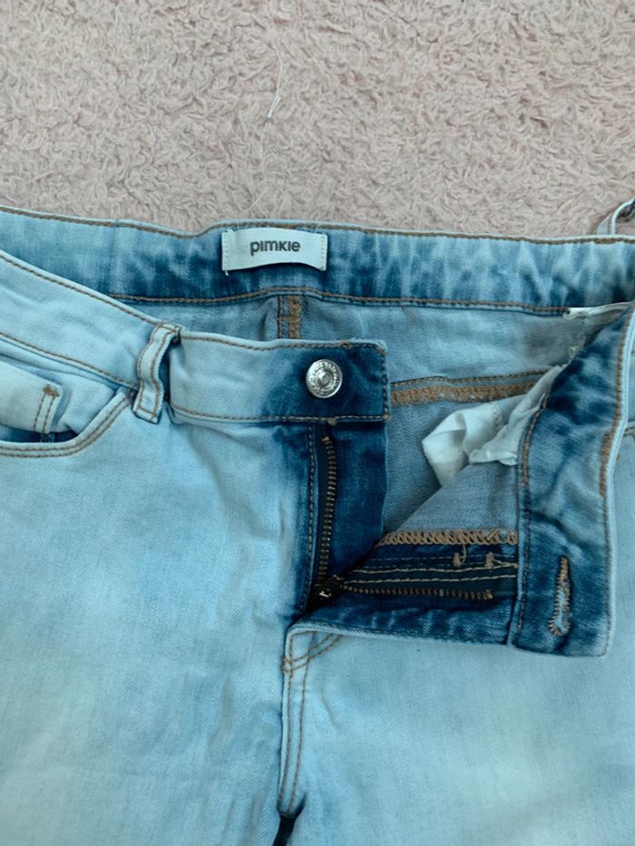 Jean bleu clair délavé pour fille en très bon état avec boutons et fermeture éclair Pimkie taille 38