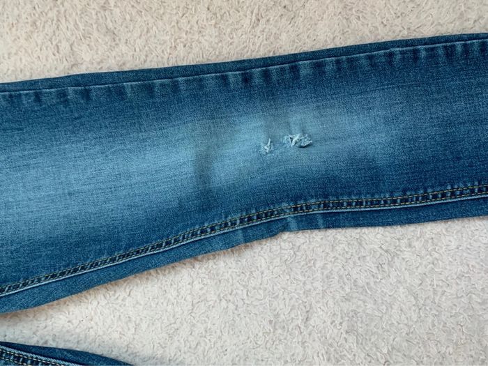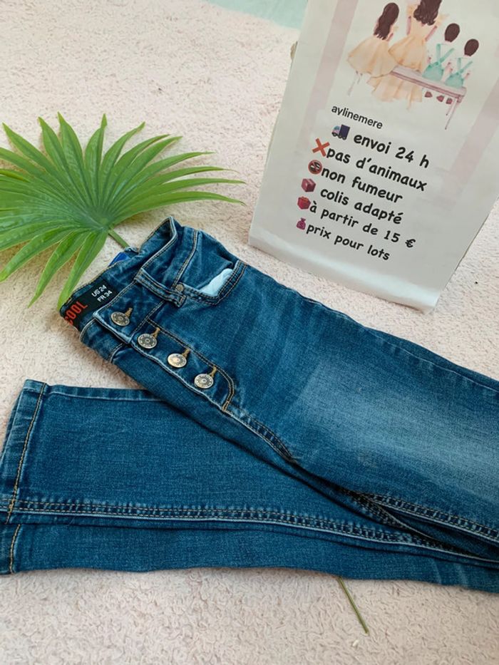 Jean skinny bleu marine en très bon état de la marque Jennyfer en taille 34 (petit accroc sur le genou voir dernière photo)