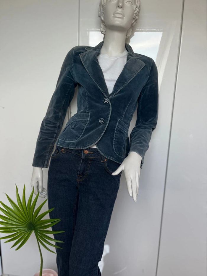 veste cintrée 34/36 2 poches légèrement décolorée au niveau du col ne se voit pas portee