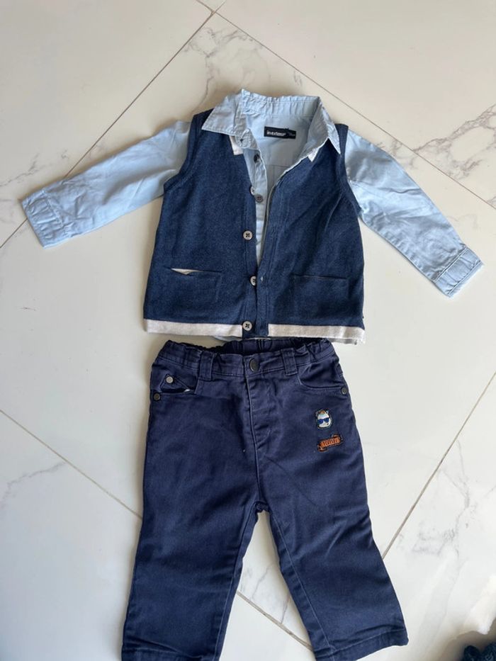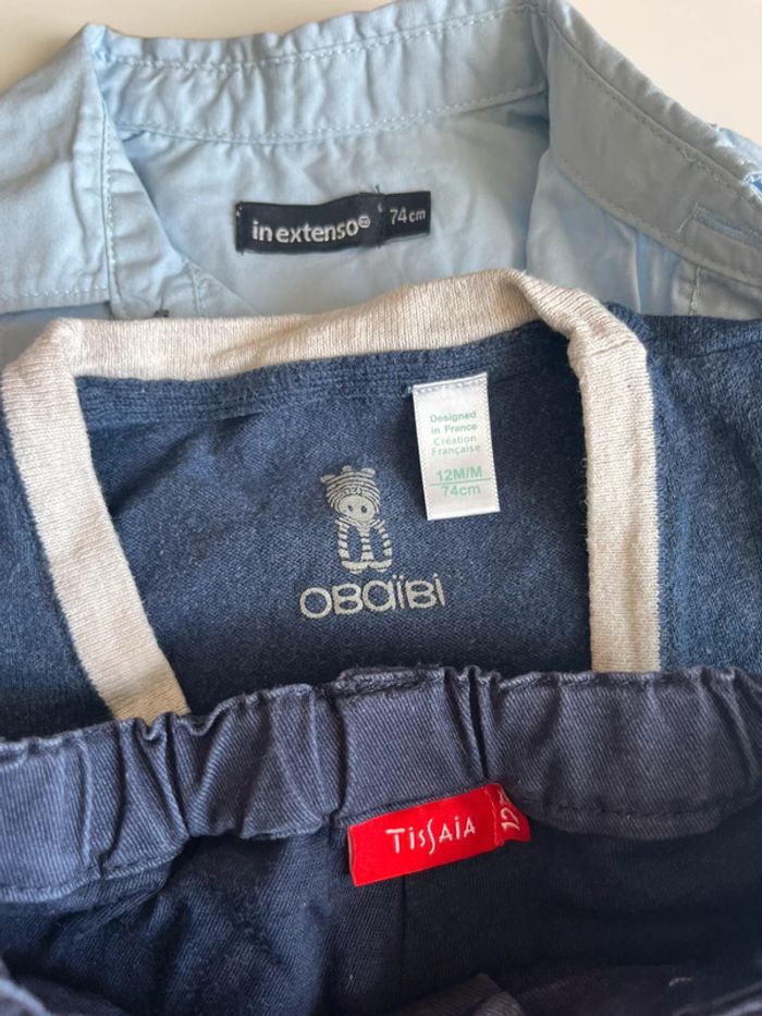 gilet obaïbi chemise mes petits cailloux pantalon tissaia #obaibi #ensemble12mois