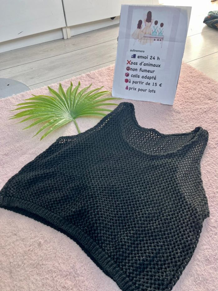 Débardeur noir court en maille crochetée ajourée asos se porte très bien avec un short en jean ou un pantalon en jean