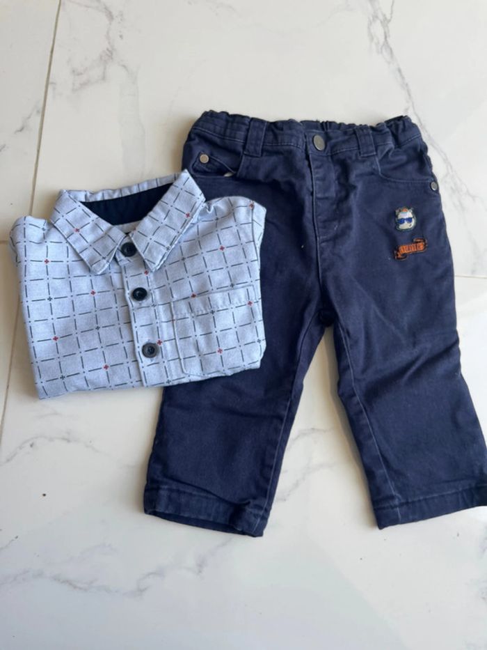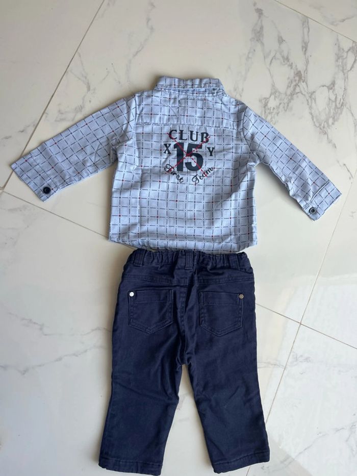 ensemble chemise chicaprie et pantalon marine tissaia 12 mois