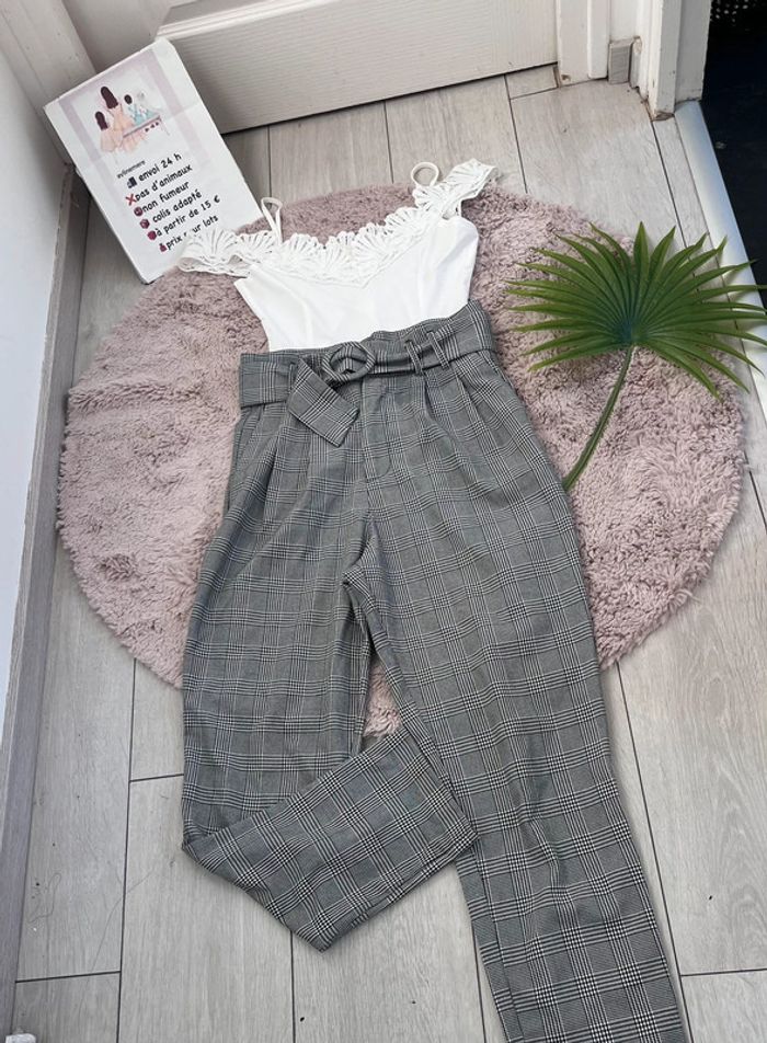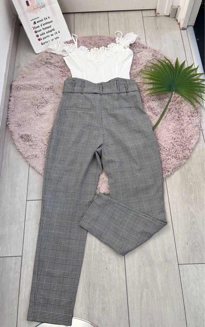 ZARA Trafaluc Collection Pantalon à pinces femme élégant et raffiné Taille : XS Imprimé Prince de Galles Pantalon à carreaux Ceinture intégrée comme neuf #zaraxs #zara34 #pantalonzara